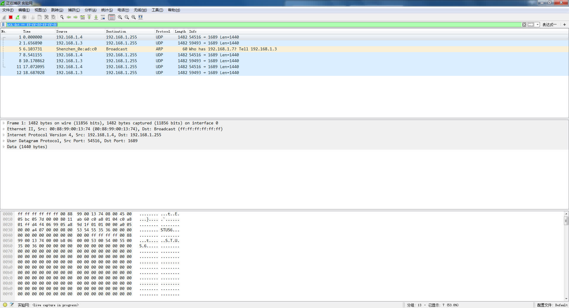 收到该帧的主机截屏WireShark: